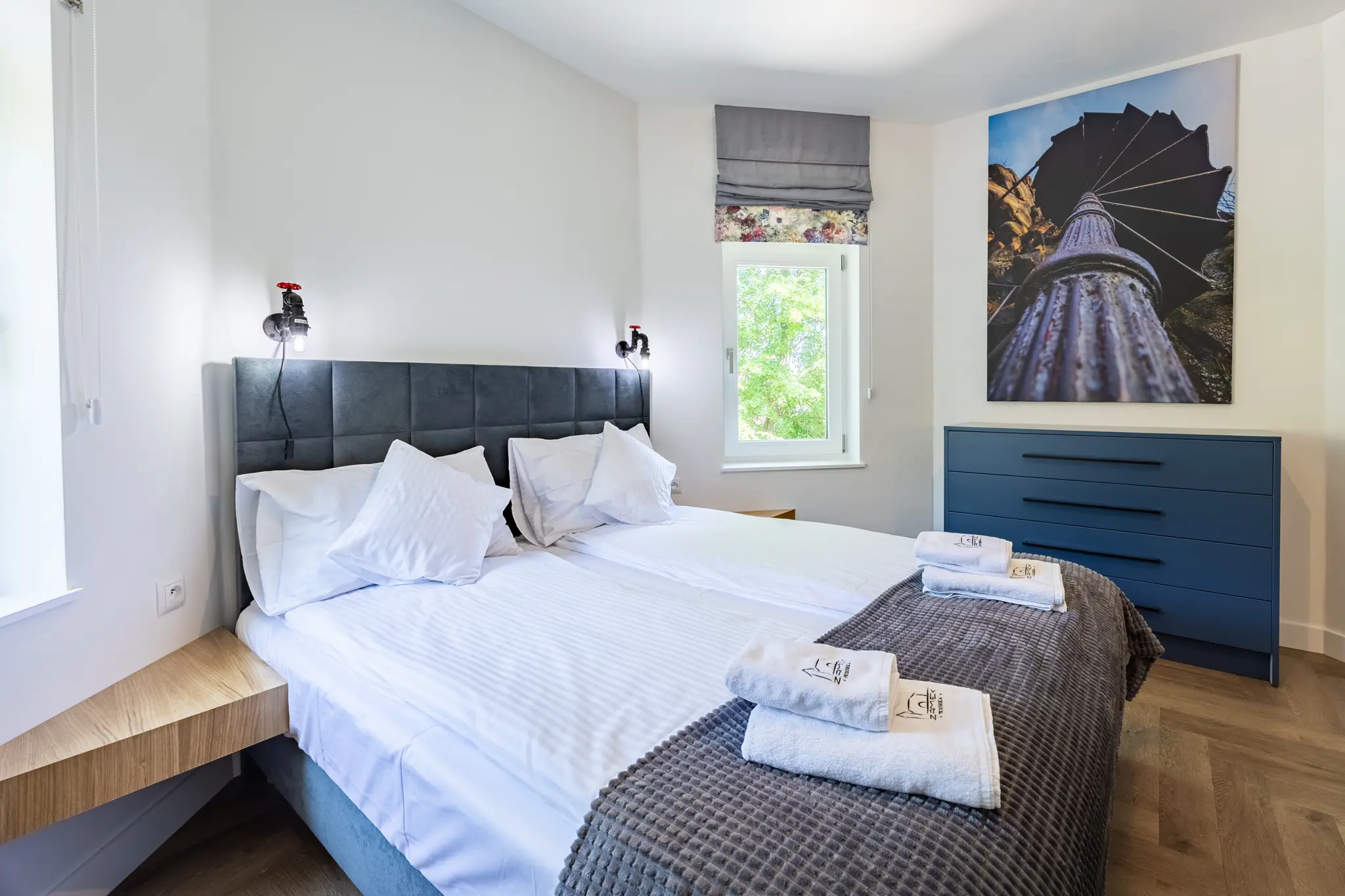 The Jelenia Góra Valley abounds in countless villas, castles and palaces. In Przesieka itself, historical gems for architecture enthusiasts can be found at almost every turn. For this reason, the Castle could not be without the Architect's Apartment, which refers to unique works of architectural art. The apartment has a bedroom in the tower with a double bed, a living room with a sofa bed (equipped with a very comfortable mattress) and a kitchenette, a veranda overlooking the Jelenia Góra Valley and a bathroom with a shower.